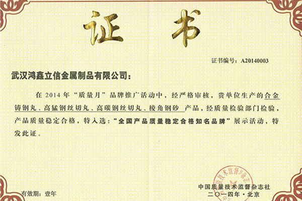 武漢鴻鑫立信金屬制品有限公司主要從事鋼丸、鋼絲切丸、鋼砂等除銹防腐耗材的生產(chǎn)和銷售。公司所有產(chǎn)品均通過ISO9001**質(zhì)量認(rèn)證,2014年更獲得了第三屆中國金屬磨料行業(yè)具有影響力品牌-華尊獎。董事長陳群芝女士從事行業(yè)17年來專注為客戶節(jié)約鋼丸消耗成本,2014年獲得了華尊獎-中國品牌建設(shè)實踐百名創(chuàng)新很好企業(yè)家的榮譽(yù)。服務(wù)過的國家建設(shè)項目有:北京鳥巢體育館、遼寧號航母、杭州灣跨海大橋、南海軍艦、成都雙流**機(jī)場、南車集團(tuán)動車檢測中心、武漢火車站、武漢天興洲大橋等,同時服務(wù)的行業(yè)囊括橋梁制造、船舶制造、汽車制造、火車車輛制造、大理石打磨、鑄件清砂、各種機(jī)械制造表面清理等。鴻鑫鋼丸,值得信賴。
